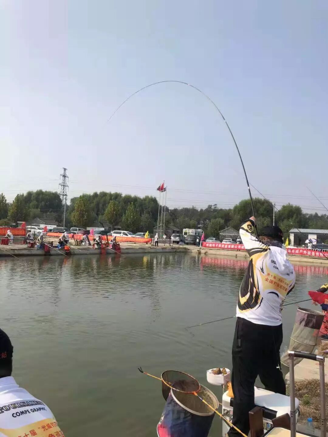 选手稳住身体,提竿溜鱼,和鱼儿展开了“拉锯战”,不一会儿,鱼儿被溜得筋疲力尽,乖乖破水而出,一拉一抄,轻松收入护中。